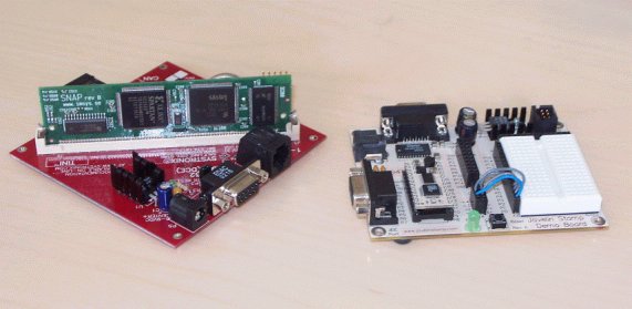 Evaluations boards for the Imsys SNAP (left), showing the SIMM